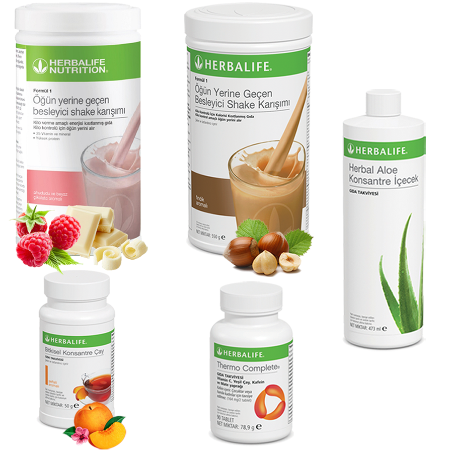 Enerjik ve Pozitif Herbalife Ürünleri: Ahududu Shake, Fındık Shake, Çay Şeftali, Aloe Vera, Thermo Complete