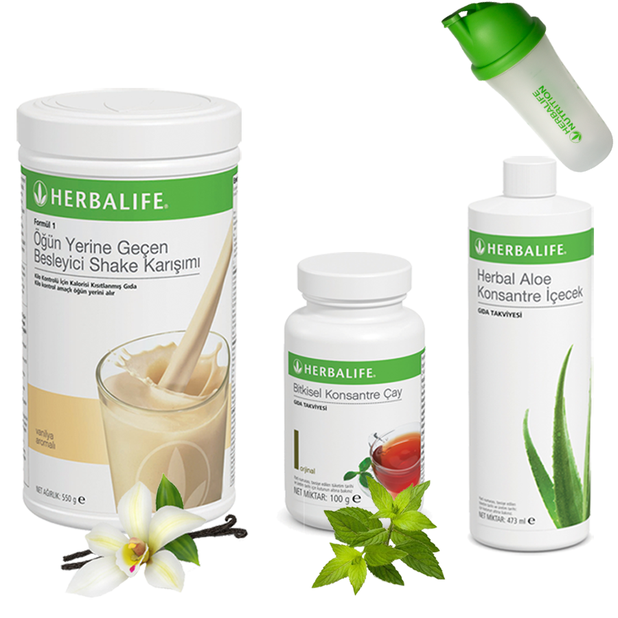 Enerjik ve Pozitif Herbalife Ürünleri: Herbalife Shake Vanilya, Herbalife Çay Klasik 100 Gr, Herbalife Aloe Vera ve Shaker